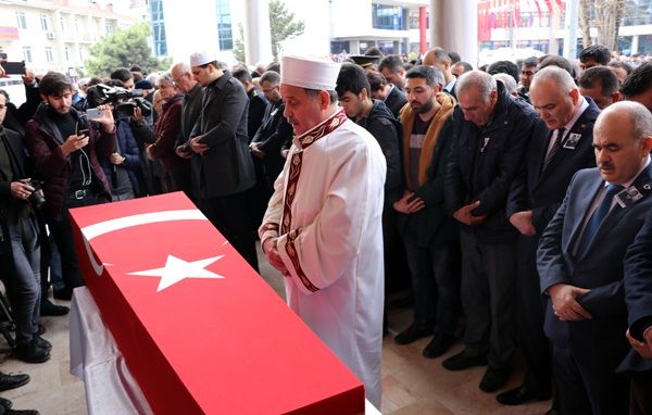 Cumhuriyet Mahallesi'ndeki baba evine getirilen Kavun'un Türk bayrağına sarılı tabutu, burada helallik alınmasının ardından Cedidiye Camisi'ne götürüldü.