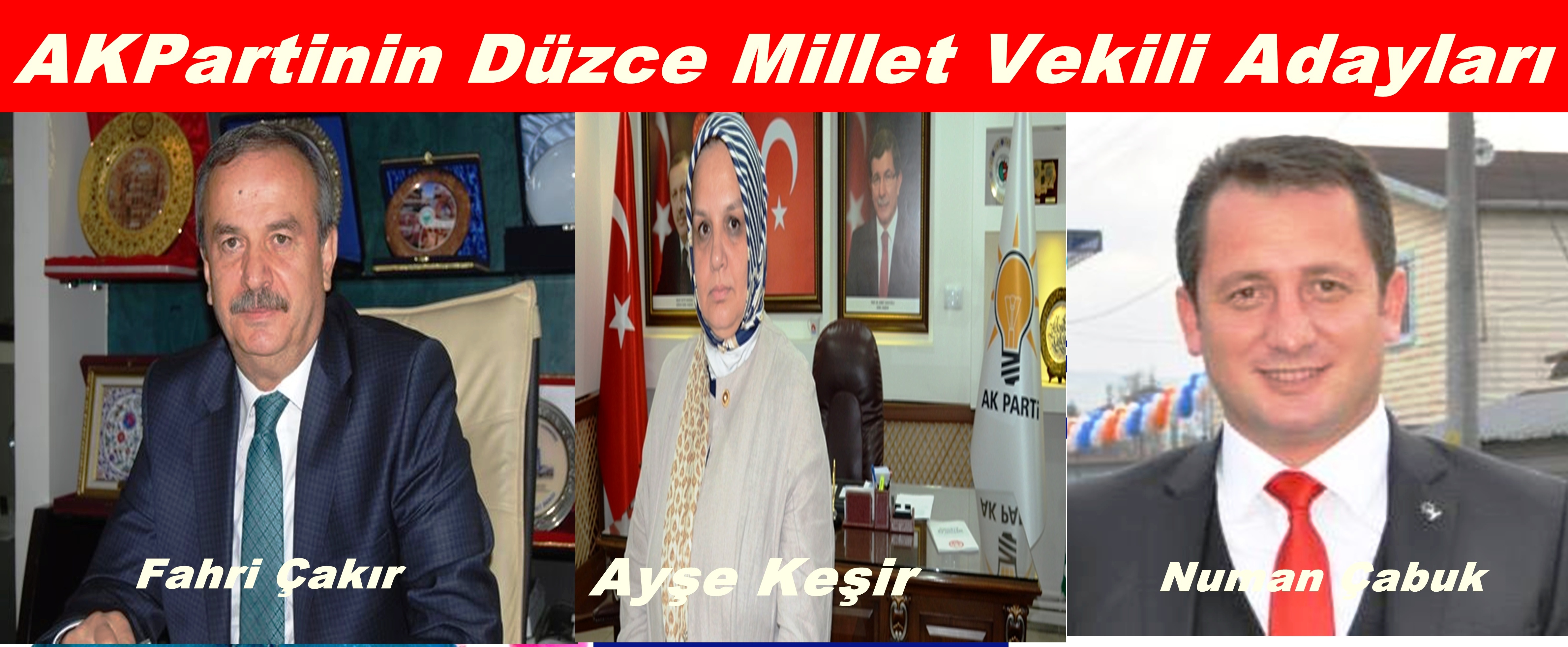 AK Partisi’nde 24 Haziran’da yapılacak 27. Dönem Milletvekili Genel Seçiminde adaylık için yarışan aday adayları arasından belirlenen adayların listeleri YSK’ya verildi. Buna göre Düzce’de AK Partisi 1.sıra adayı Fahri Çakır. 2.sırada kendisine yer bulan Ayşe Keşir 3.sıra ile Numan Çabuk takip etti.