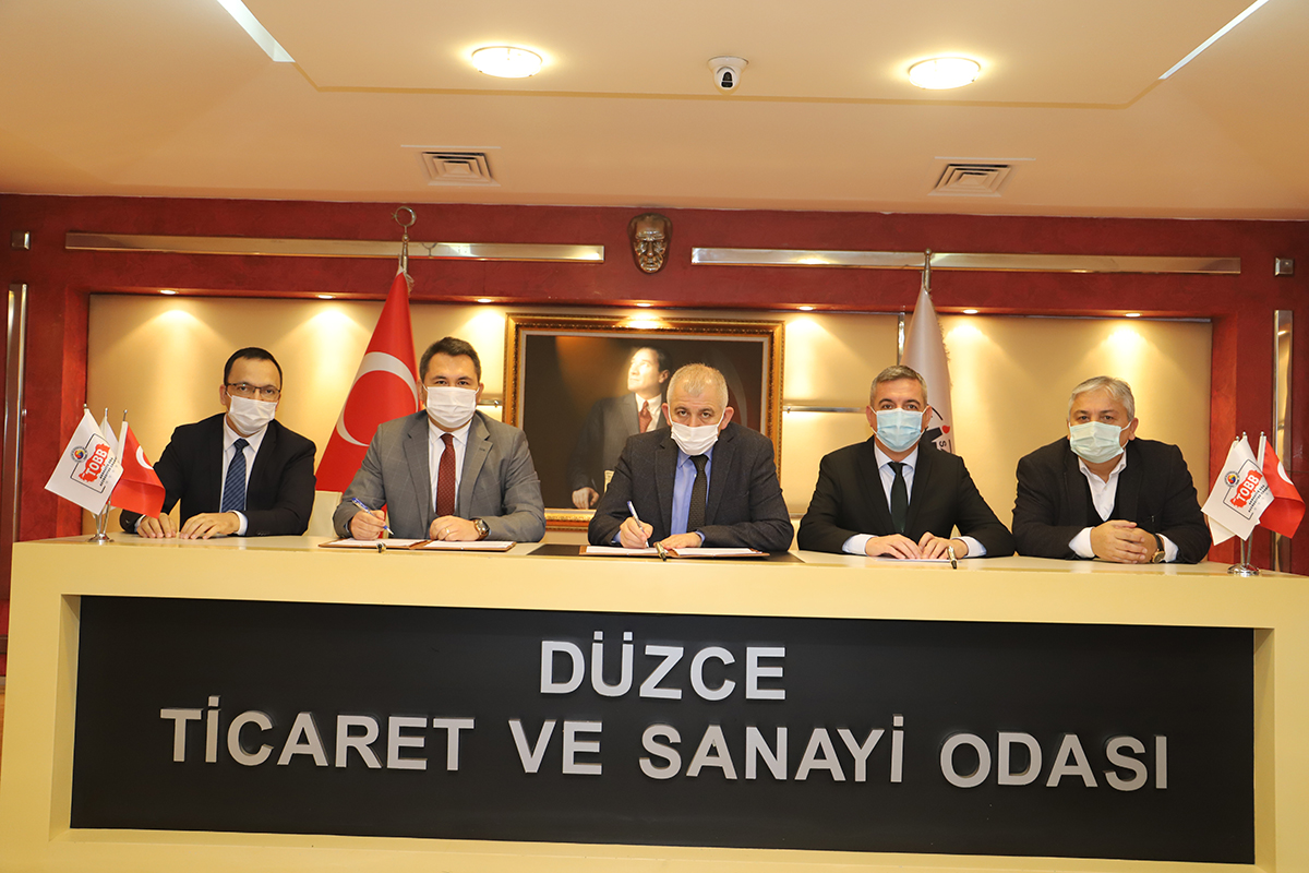 Türkiye Odalar ve Borsalar Birliği’nde tanıtım toplantısı gerçekleştirilen Paraf Kredi Kartı Tedarik Zinciri Finansmanı Projesi’nin protokol imza töreni Düzce Ticaret ve Sanayi Odası’nda gerçekleştirildi. İmza törenine; Düzce TSO Yönetim Kurulu Başkanı Tuncay Şahin, Başkan Yardımcısı Ümit Ülgen, Yönetim Kurulu Üyeleri Bilal Türkan, Metin Coşkun, Murat Saydam ve Özkan Çakır, Halk Bankası Düzce Şube Müdürü Saadettin Eren ve banka temsilcileri katılım sağladı.