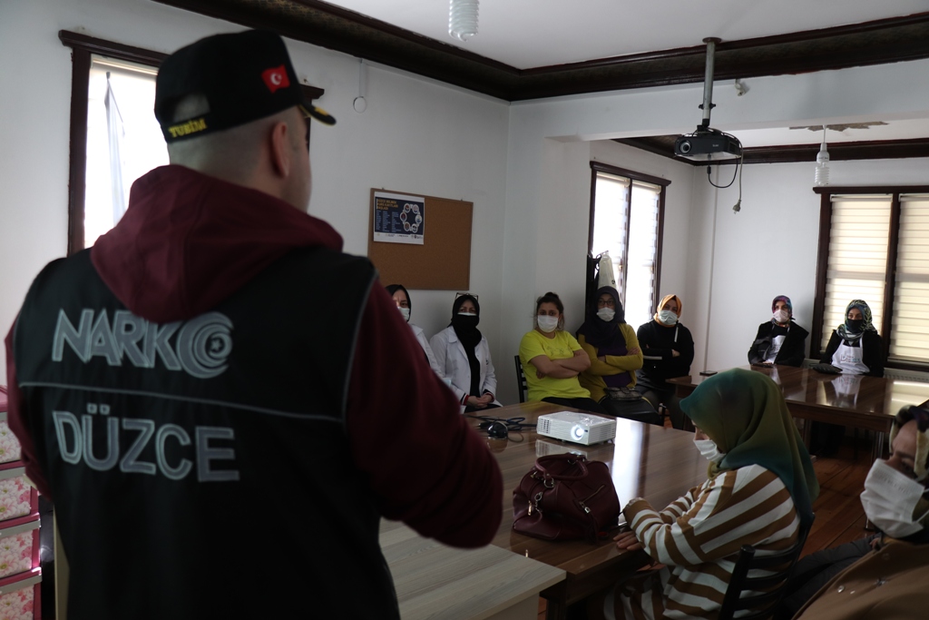 Çocuklar ve gençlerde uyuşturucu kullanımının önüne geçip, annelerin duyarlılığını artırmak için İçişleri Bakanlığınca hayata geçirilen “En İyi Narkotik Polisi: Anne Projesi” kapsamında Düzce İl Emniyet Müdürlüğü Narkotik Suçlarla Mücadele Şube Müdürlüğü ekipleri BELMEK kursiyer ve eğitimcilerini bilgilendirdi.