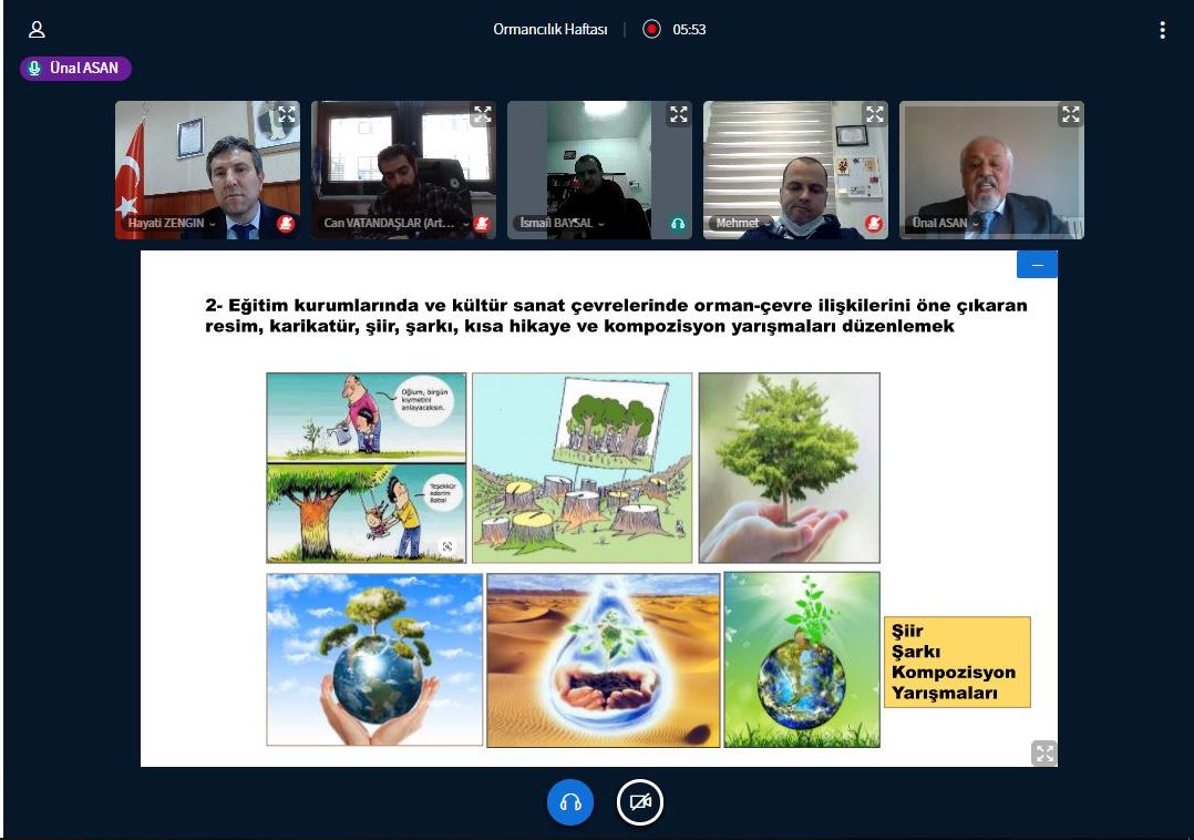 Ormanların ve ağaçların önemine dikkat çekildiği etkinliklerde Orman Muhafaza Memurları ve Emeklileri Derneği Yönetim Kurulu Üyesi Hüseyin Durkaya, “Ormanların Korunmasında Sivil Toplum Kuruluşlarının Önemi” konu başlığında sunum yaparken, Prof. Dr. Ünal Asan ise, “Dünya Ormancılık Günü ve Ormanlarımız” hakkında bilgi ve deneyimlerini paylaştı.