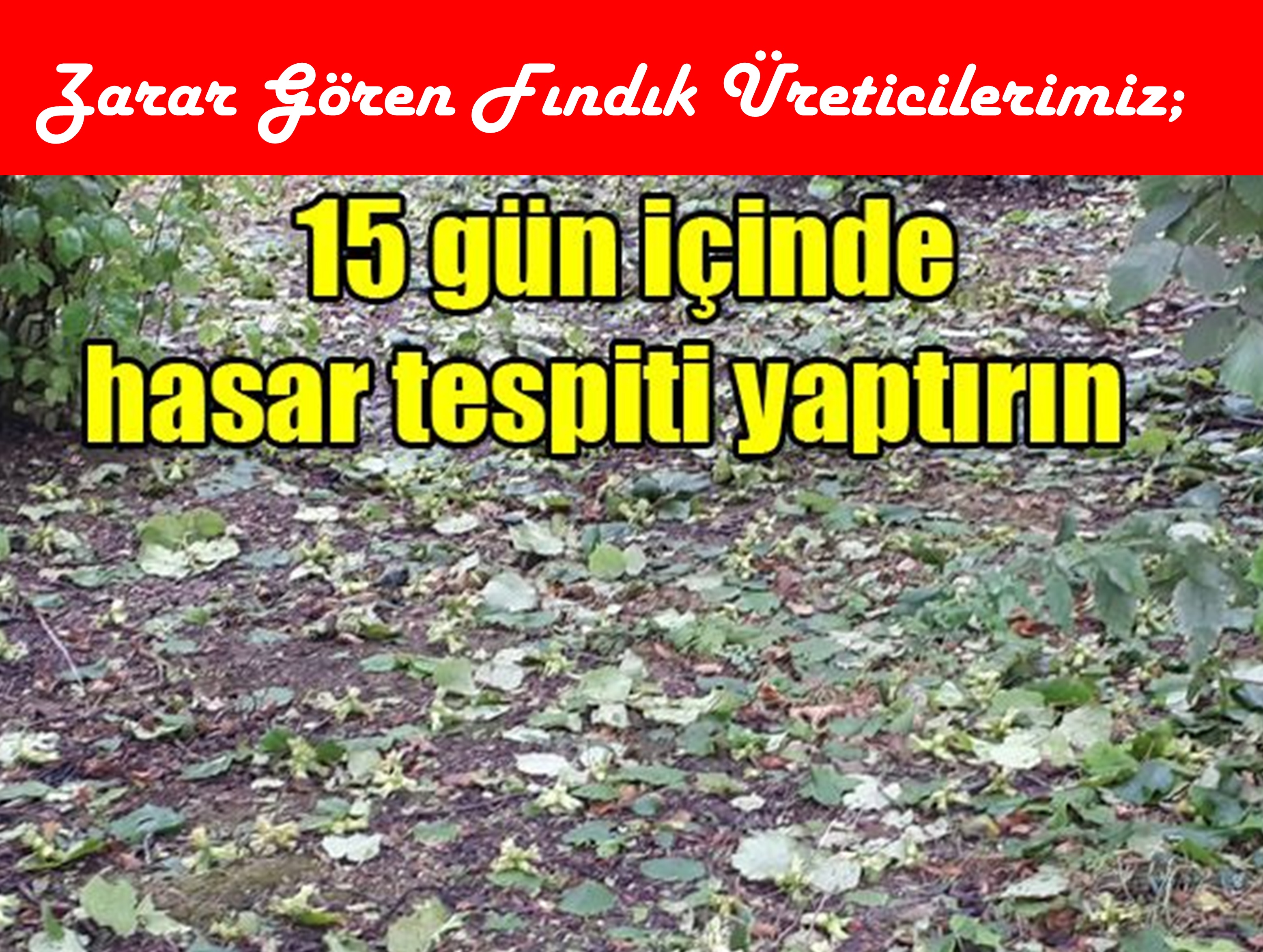 Zarar Gören Fındık Üreticilerimiz;15 gün içinde hasar tespiti yaptırın