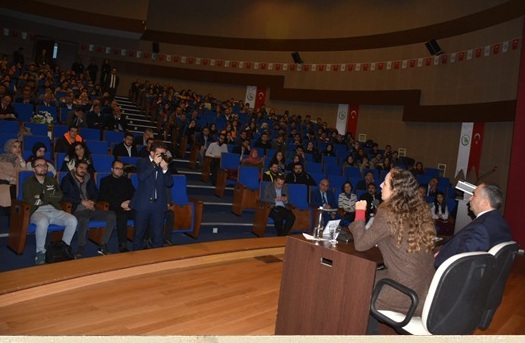 Düzce Belediye Başkanı Dursun Ay ve Düzce Üniversitesi Rektörü Prof. Dr. Nigar Demircan Çakar üniversite bünyesinde düzenlenen söyleşide öğrencilerle buluştu.