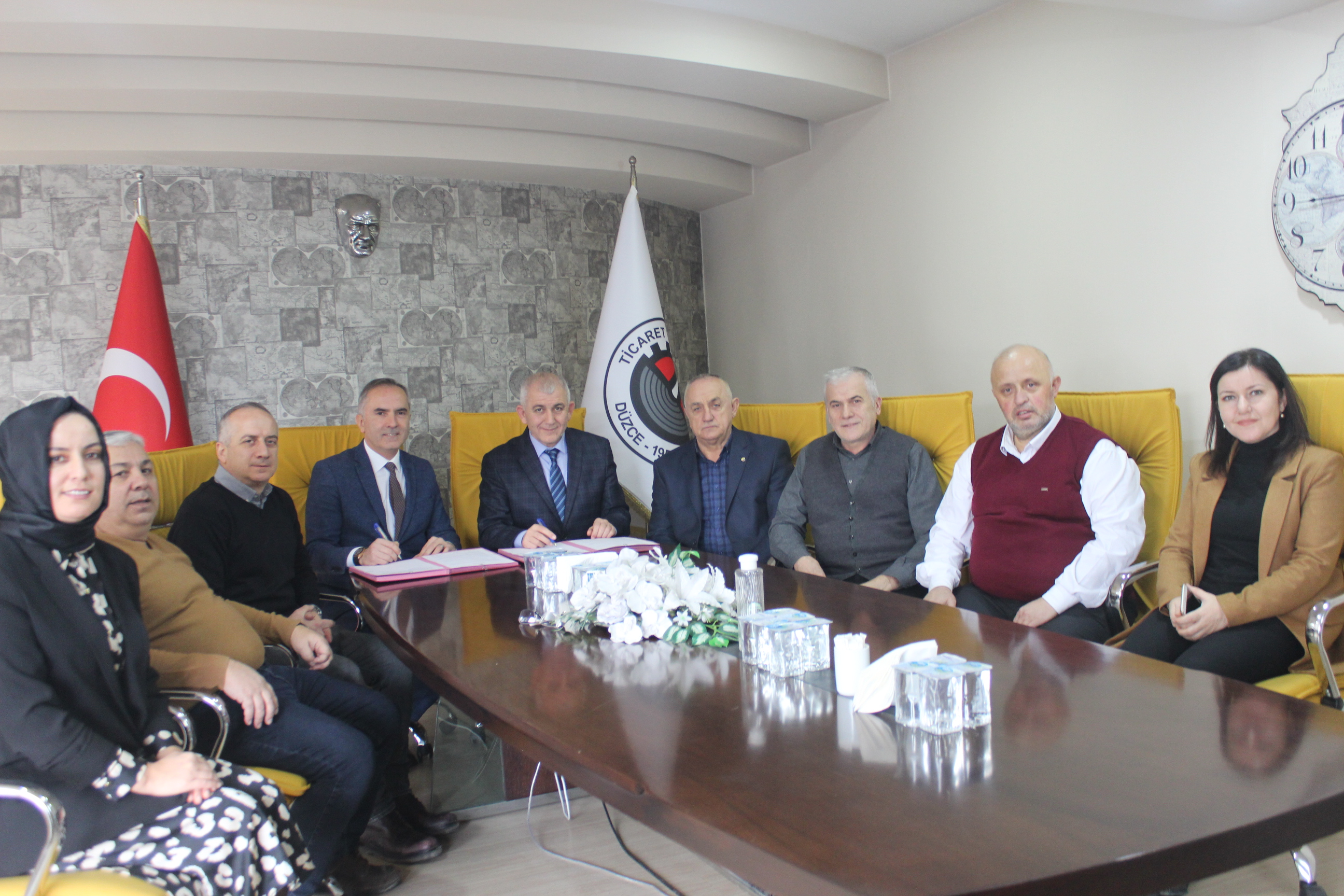 Protokol imza törenine Düzce TSO Yönetim Kurulu Başkanı Tuncay Şahin, Yönetim Kurulu Üyeleri Bilal Türkan, Özkan Çakır, Metin Coşkun, Bülent Sivrikaya, Murat Saydam, Genel Sekreter Yardımcısı Zeynep Cebeci, Eğitim ve Kalite Sorumlusu Vildan Yılmaz hazır bulundu.