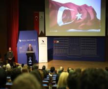 Düzce Üniversitesi’nin akademik kadrosu, öğrencileri ve idari personeli olarak ortak sorumluluklarının, ülkemizi ve ay yıldızlı bayrağımızı daha güçlü yarınlara taşımak olduğunu belirten Prof. Dr. Sözbir, “Bu hedef, yalnızca temenniyle değil; her birimizin bireysel bilinç ve yüksek sorumluluk anlayışıyla, görevini en iyi şekilde yerine getirme kararlılığıyla mümkün olacaktır. “ diyerek programın davetli konuşmacısıDüzce Üniversitesi Fen Edebiyat Fakültesi Öğretim Üyesi Prof. Dr. İlhan Genç’e teşekkür etti.