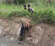 KANALA DÜŞEN TOSUN YARIM SAATTE KURTARILDI Düzce Belediyesi İtfaiye Müdürlüğü ekipleri gelen ihbar üzerine kanala düşe